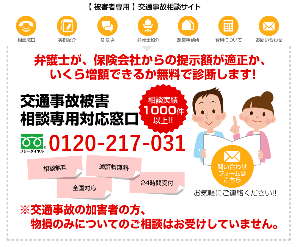 交通事故相談料・着手金:0円